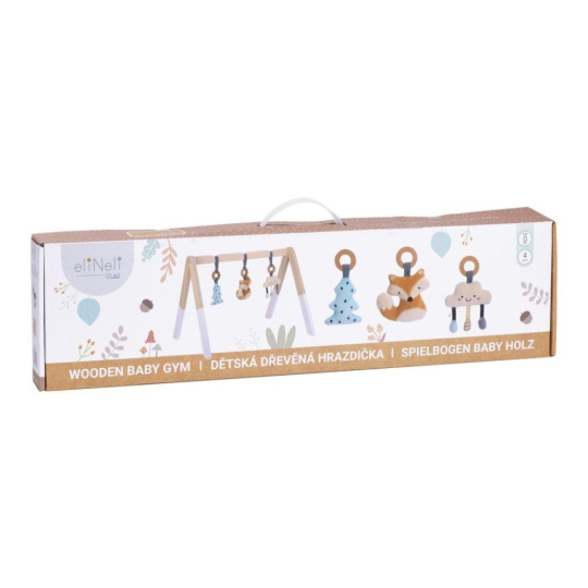 Drevná detská hrazdička so zavesenými hračkami v podobe roztomilej líštičky, stromčeka a obláčika upúta pozornosť každého bábätka. Detská hrazdička v neutrálnych farbách, vhodná pre dievčatká aj chlapcov, stimuluje detské zmysly, motivuje bábätká k pohybu a prieskumu zavesených prvkov. Každú z mäkkých hračiek môžete zo drevnej hrazdičky sundat a použiť ako samostatné hračky.