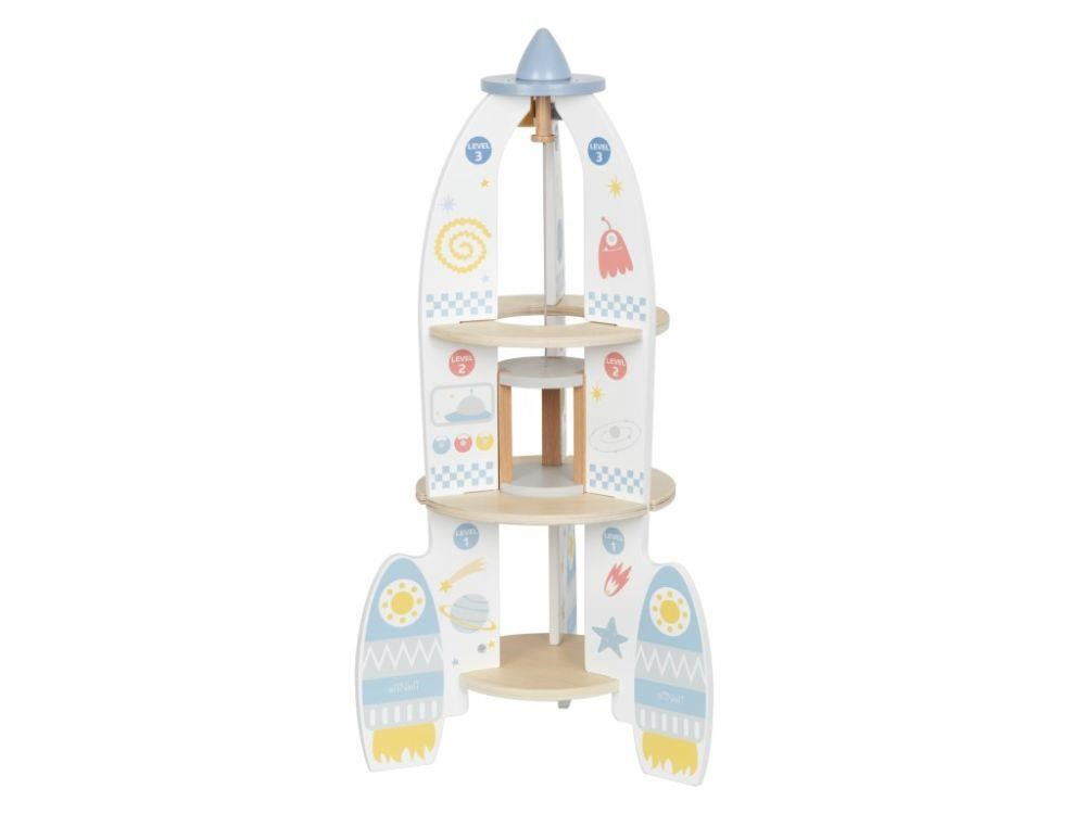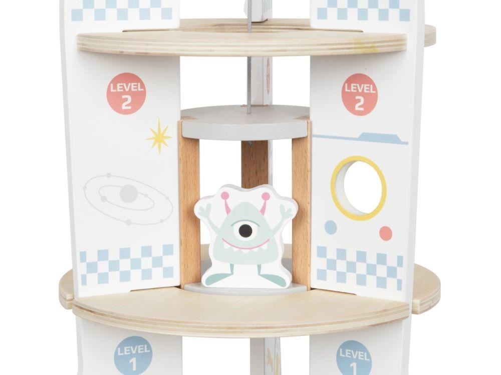Drevená hračka v podobe rakety vyvezie vaše dieťa do vesmíru, aspoň v jeho fantázii. Drevená raketa s doplnkami a výťahom je zábavnou hračkou, s ktorou môžu deti lietať po dome či byte, hrať si s astronautmi priamo v rakete, vozíť ich výťahom rovnako ako potrebné vybavenie na misiu. Hračka dokonale potrénuje motorické zručnosti, rozvíja detskú fantáziu a kreativitu.