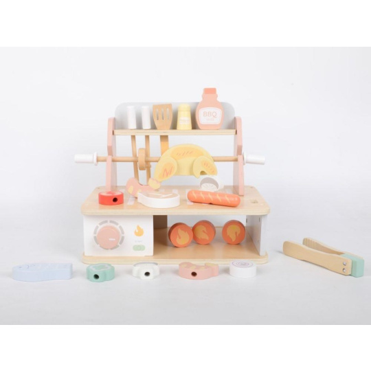 .Dřevěný gril pro děti s doplňky - BBQ sada