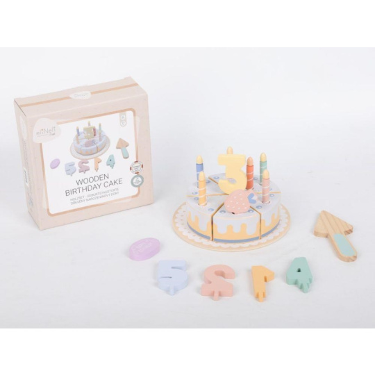 Drevený narodeninový tort so sviečkami a číslami umožní deťom sláviť narodeniny pokojne každý deň. Drevená hračka v podobe krájacieho tortu je skvelým doplnkom do detskej kuchynky aj obchodu. S dreveným tortom bude pripraviť narodeninovú oslavu pre oblúbeného plyšáka hračkou aj veľkou zábavou. Tortu môžu deti porcovať a touto dobrotou pohostiť všetkých účastníkov hostiny, predávať ju v detskom obchode, cukrárni alebo kaviarni.