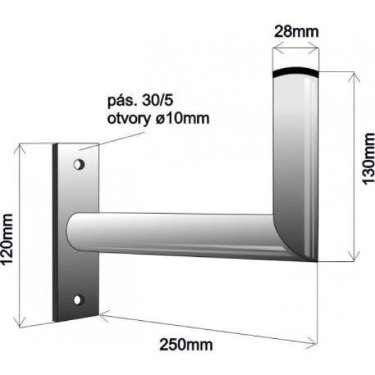 Držák antény na zeď, galvanický zinek, délka 25cm
