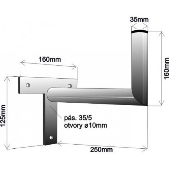 Držiak antény na stenu mini, tvar T, dĺžka 25cm