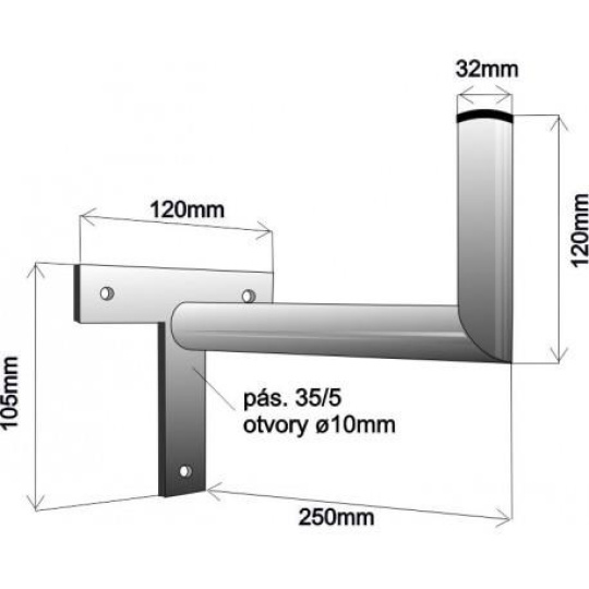 Držiak antény na stenu, tvar T mini, dĺžka 25cm