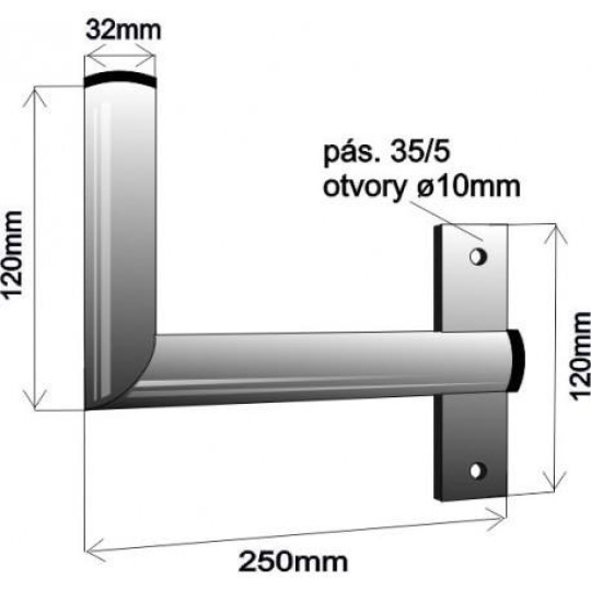 .Držák antény na zeď u okna s pásem, pravé uchycení, galvanický zinek, délka 25cm, průměr 3,2cm