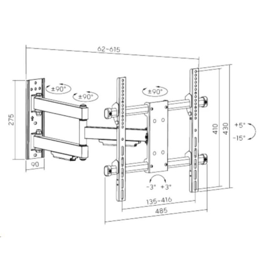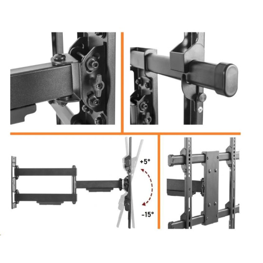 Otočný sklápací výsuvný držiak TV Fiber Mounts RAPTOR Kvalitný držiak TV 43" - 60", vzdialenosť od steny 62 - 615mm, otočný až +90° / -90°, naklápanie +5° / -15°, kvalitná pevná konštrukcia, úchytky na káble, montážny materiál, VESA 200x100 až 400x400, nosnosť 50kg, záruka 10 rokov Kvalitný nástenný držiak na televíziu Fiber Mounts RAPTOR Predstavujeme Fiber Mounts RAPTOR - kvalitný držiak na televíziu, ktorý premení váš obývací priestor na dynamické multimediálne centrum. S Fiber Mounts RAPTOR sa každý filmový večer stane nezabudnuteľným zážitkom, a každý športový prenos bude taký živý, akoby ste boli priamo na štadióne. Nenechajte sa viazať statickým umiestnením vašej televízie. Vďaka otočnému mechanizmu +90° / -90° a naklápaniu +5° / -15° si môžete obrazovku nastaviť presne podľa vašich potrieb. Či už sledujete obľúbený film z pohodlia gauča, kresla alebo potrebujete upraviť uhol pohľadu na videohovor, Fiber Mounts RAPTOR vám to umožní s ľahkosťou. Okrem toho, s vzdialenosťou od steny 62 - 615mm, Fiber Mounts RAPTOR poskytuje nielen flexibilitu v umiestnení, ale aj jednoduchý prístup k zadným portom vašej televízie pre rýchle pripojenie alebo odpojenie zariadení. A vďaka pevnej konštrukcii a nosnosti až 50kg môžete mať istotu, že váš 43" - 60" televízor bude v bezpečí. Nezabudli sme ani na estetickú stránku. S úchytkami na káble bude váš obývací priestor vždy vyzerať uprataný a organizovaný, bez rušivých káblov visiace z televízie. A s priloženým montážnym materiálom a zárukou 10 rokov je montáž a používanie Fiber Mounts RAPTOR hračka. Televízny držiak kvalitnej robustnej konštrukcie Fiber Mounts RAPTOR Technické údaje: nosnosť 50kg podpora VESA štandardov pre zavešenie TV 200x100 až 600x400 ideálny na televízie a obrazovky s uhlopriečkou 43" až 60" nastaviteľná vzdialenosť od steny 62 - 615mm otáčanie obrazovky do strán až +90° / -90° naklápanie +5° / -15° korekcia roviny obrazovky +3° / -3° kvalitná veľmi pevnú konštrukciu úchytky na káble nástenný úchyt o rozmeroch 275 x 90mm farebné prevedenie čierne záruka 10 rokov