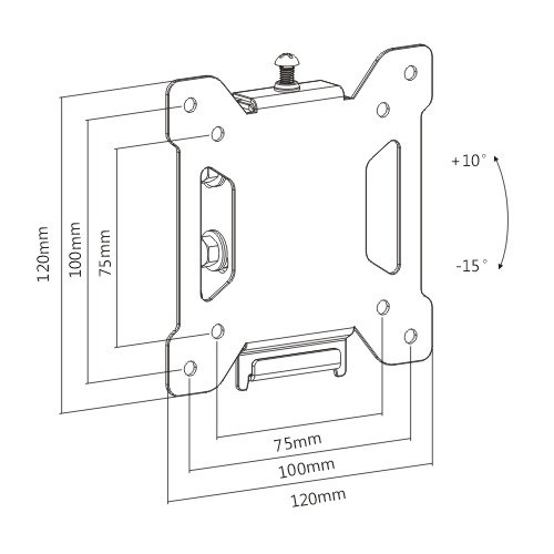Držiak monitora TV Fiber Novelty FN203T Sklopný držiak na monitory a menšie televízie 13-30", VESA 75x75 a 100x100, náklon +10° až -15°, vzdialenosť od steny 36mm, nosnosť 20kg, záruka 5 rokov. Nástenný držiak na monitory a menšie televízie 13-30", ktorý umožní nastavenie náklonu obrazovky +10° až -15°. Zaveste monitor alebo TV je veľmi jednoduché a rýchle, rovnako tak aj samotná inštalácia držiaka na stenu. Držiak podporuje VESA štandardy 75x75 a 100x100, nosnosť 20kg. Farebné prevedenie čierne, záruka 5 rokov. Držiak na televízory a monitory Fiber Novelty FN203T - sklopný, VESA štandard 75x75 a 100x100 / drzakyastolky.cz Technické údaje: nosnosť 20kg na televízory a monitory s uhlopriečkou 13" až 30" podporuje VESA štandardy 75x75 a 100x100 umožňuje náklon +10° až -15° vzdialenosť TV od steny 36mm konštrukcia je oceľová veľmi pevný a bezpečný nástenný držiak zaistenie TV alebo monitoru proti vysadeniu veľmi jednoduchá a rýchla montáž súčasťou balenia je montážny materiál farebné prevedenie čierne záruka 5 rokov Nástenný sklopný držiak na monitory a menšie televízie 13-30" Fiber Novelty FN203T Držiak na TV a monitory FN203T podporuje VESA štandardy: VESA 75x75 VESA 100x100