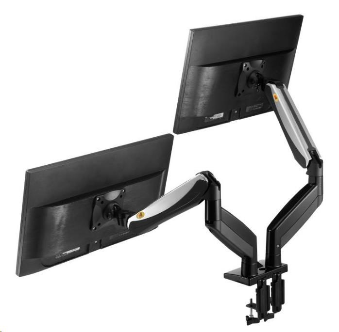 Nastaviteľný držiak pre dva monitory s hmotnosťou od 2 kg do 8 kg, TOP dizajn a kvalita Veľmi kvalitný stolný držiak na zavesenie 2 monitorov na stolovú dosku v kancelárii, pracovni alebo domácnosti. Monitory je možné nezávisle otáčať do strán, nakloniť, posúvať. Môže byť tiež nastavená výška od stolovej dosky, horizontálne aj vertikálne otáčanie obrazovky, korekcia roviny. Stačí raz nastaviť hmotnosť Vášho monitora na držiaku a ďalej už nemusíte používať žiadny nástroj. Veľmi pekný dizajn, kvalitná bezpečná konštrukcia, ľahká manipulácia. Polohovateľný stolný držiak na dva monitory do kancelárie Technické údaje: celková nosnosť 16kg zavesenie 2 monitorov s hmotnosťou 2-8kg odporúčame na monitory 19" až 30" nakoň +55°/-8° natočenie monitora vpravo-vľavo o 180° otáčanie ramena o 360° funkcia PIVOT - otočenie monitora o 360° minimálna výška monitora od pracovnej dosky 230 mm (stred monitora) maximálna výška monitora od pracovnej dosky 530 mm (stred monitora) maximálna hrúbka pracovnej dosky 90 mm nastaviteľná vzdialenosť do 625 mm Korekcia roviny 2x USB port Systém pre skryté vedenie káblov dva typy uchytenia ku stolu - na okraj alebo cez dosku vestavená pružina pre jednoduché nastavenie výšky vysoká kvalita s dôrazom na detail moderný dizajn vyrobené z hliníka a zliatiny ocele ľahká a rýchla inštalácia farebné prevedenie čierne+chrom záruka 5 rokov Stolný držiak F185A podporuje VESA štandard: 75x75 100x100