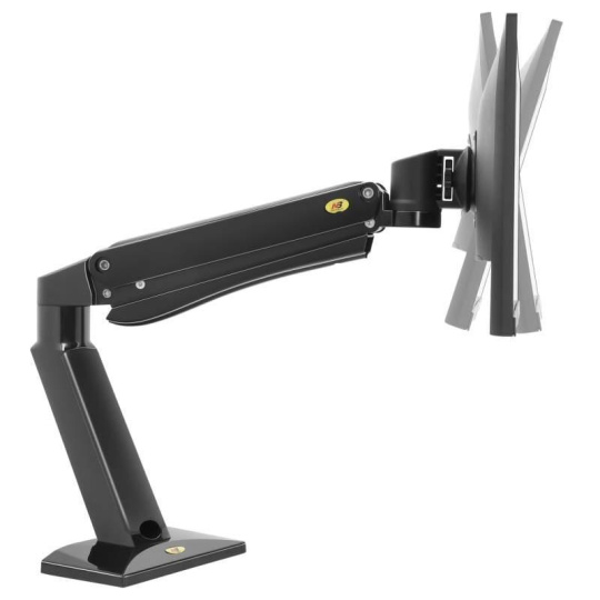 Stolný polohovateľný držiak na monitor alebo TV NB NB45B Stolný držiak na monitor alebo TV 27-43", otočný +/-180°, sklopný +/-12°, nastavenie výšky 195-635mm, dĺžka podľa otočenia 0-695mm, pivot, vedenie káblov, 2 typy stolových uchytov, VESA 75x75 a 100x100, nosnosť 15kg Profesionálny stolný držiak na veľké monitory s uhlopriečkami 27" až 43". Držiak je plne polohovateľný v 3D - otáčanie do strán, naklápenie, výškové polohovanie, rotácia monitoru, vzdialenosť od stolového uchytenia. Rameno držiaka má integrovaný plynový piest, ktorý ľahko nastavíte na hmotnosť zaveseného monitoru, potom už môžete monitor ľubovoľne výškovo polohovať veľmi ľahko a rýchlo bez náradia, iba jednou rukou. Držiak je špičkovej kvality, je vhodný aj do prevádzok, kde je nutné neustále nastavovanie polohy monitoru. Rameno držiaka má integrované krytky pre skryté vedenie káblov. Uchytenie na stolovú dosku (akékoľvek vodorovné dosky) o priemere 10mm až 90mm. Uchytenie je možné buď na okraj dosky (2 svorky) alebo kamkoľvek do priestoru (potrebná 1 dierka o priemere 10-50mm). Farebné prevedenie čierne. Záruka 3 roky. Profesionálny stolný držiak na monitor alebo TV NB NB45B Technické údaje: nosnosť (nastaviteľné zaťaženie) 3kg až 15kg na monitory a televízory s uhlopriečkou 27" až 43" VESA štandardy 75x75 a 100x100 (možnosť rozšírenia) 3D nastavenie polohy otáčanie do strán +/- 180° vzdialenosť max. 695mm od uchytenia výška 195mm až 635mm náklon +/- 12° rotácia obrazovky (PIVOT) - otočenie do vodorovnej alebo zvislej polohy najvyššia kvalita spracovania systém na vedenie káblov 2 typy uchytenia na stolové (vodorovné) dosky - na okraj alebo do priestoru na stolové dosky 10mm až 90mm farebné prevedenie čierne záruka 3 roky Stolný držiak na monitor NB NB45B Držiak monitoru TV NB45B podporuje VESA štandardy: VESA 75x75 VESA 100x100