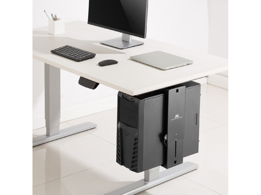 Držiak MC-885 je určený na vertikálnu montáž počítača pod stolovou doskou. Je to perfektné riešenie pre optimálne využitie pracovného priestoru.