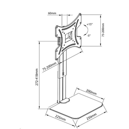 Držiak TV monitoru s poličkou Fiber Mounts FM46 Nástenný držiak na televízory a monitory 15" - 43" s poličkou na príslušenstvo 250 x 200mm a nosnosťou 5kg, nastaviteľná vzdialenosť poličky od držiaka 272 - 418mm, naklápanie obrazovky +15° / -5°, vzdialenosť obrazovky od steny 60mm, VESA 75x75 až 200x200, nosnosť držiaka 20kg Nástenný držiak na TV monitor vrátane poličky na príslušenstvo Fiber Mounts FM46 Technické údaje: nosnosť držiaka 20kg nosnosť poličky 5kg držiak podporuje VESA štandardy 75x75 až 200x200 možnosť naklánenia obrazovky +15° / -5° vzdialenosť od steny 60mm sklenená polička 250 x 200mm nastaviteľná vzdialenosť poličky od držiaka 272 - 418mm kovová konštrukcia, polička z tvrdeného bezpečnostného skla inštalačný materiál farebné prevedenie čierne záruka 2 roky Držiak na televíziu alebo monitor 15" až 43" vrátane poličky na príslušenstvo 250 x 200mm Fiber Mounts FM46 Držiak TV / monitoru FM46 podporuje VESA štandardy: VESA 75x75 VESA 100x100 VESA 200x100 VESA 200x200