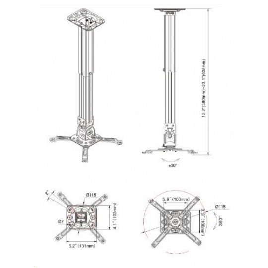 Stropný držiak pre dataprojektor NB T817-60 Spoľahlivý, nastaviteľný stropný držiak na zavesenie projektorov Kvalitne spracovaný držiak pre projektory s možnosťou výškového nastavenia. Projektor je možné po zavese otočiť o 360°, nie je chýba naklon +/- 20° ani systém na vedenie kábla. Nosnosť držiaka je 11 kg, dizajn je kompletne vyvedený v bielom prevedení. Výhodou je možnosť inštalácie na šikmý strop. Odporúčame aj náročnejším zákazníkom. Technické údaje: nosnosť 11kg otočný o 360° naklon +/- 20° nastaviteľná vzdialenosť od stropu 383 - 600mm nastavenie uhla voči stropu +/- 45° možnosť inštalácie na šikmý strop biele prevedenie vysoká kvalita pevná a odolná konštrukcia systém vedenia kábla inštalačný materiál súčasťou balenia záruka 10 rokov
