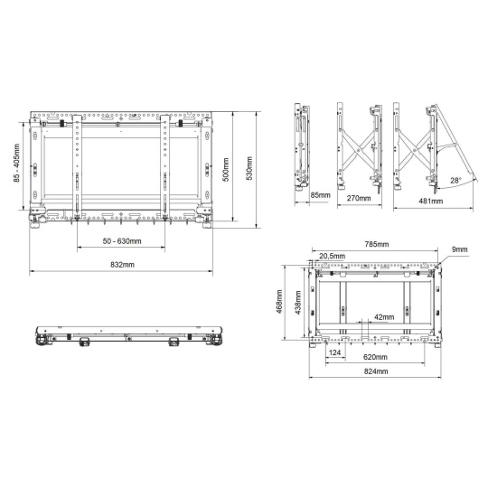 Technické údaje: maximálne zaťaženie 60kg na televízory a monitory s uhlopriečkou 40" až 65" VESA štandard 100x100 až 600x400 nezávislé zavesenie každej obrazovky 8-polohové nastavenie každej z obrazoviek bez použitia náradia zásuvný mechanizmus pre pohodlný prístup k obrazovkám možnosť uzamknutia zatahovacieho mechanizmu otvorená konštrukcia držiaka umožní jednoduchý prístup k zapojeniu obrazoviek profesionálna konštrukcia držiaka eliminuje nutnosť výpočtov pre realizáciu montáže pružinový systém na nastavenie požadovanej tuhosti - v prípade zavesenia obrazoviek rôznych hmotností najvyššia kvalita, špičkový nezávislý systém zavesenia farba čierna záruka 5 rokov Držiak pre sestavu videosteny EDBAK VWPOP85-L podporuje VESA štandardy: VESA 100x100 VESA 200x100 a 100x200 VESA 200x200 VESA 300x200 a 200x300 VESA 300x300 VESA 400x200 a 200x400 VESA 400x300 a 300x400 VESA 400x400 VESA 600x400