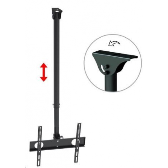 Vysoko kvalitný stropný držiak vhodný na všetky typy TV s uhlopriečkou do 52". Držiak umožňuje nastavenie vzdialenosti od stropu v rozmedzí 105 - 156cm, natočenie do strán bez obmedzenia a naklápanie TV. Maximálna záťaž stropného držiaku je 50kg. Stropný držiak TV sa vďaka svojej kvalite a veľmi priaznivej cene stal veľmi obľúbeným. Fiber Novelty FN-C400 Technické údaje: maximálna záťaž 50kg vhodný na TV 23" - 52" VESA štandard 100x100 až 400x400mm nastaviteľná vzdialenosť od stropu 105 - 156cm teleskopická konštrukcia držák neumožňuje otáčanie televízora do strán naklonenie 0° až -15° vhodný na montáž na šikmé stropy náklopný úchyt na kotvenie do stropu 0-90° výborná kvalita jednoduchá montáž čierna farba záruka 2 roky Držiak TV na strop Fiber Novelty FN-C400 podporuje VESA štandardy: VESA 75x75 VESA 100x100 VESA 200x100 VESA 200x200 VESA 300x200 VESA 300x300 VESA 400x200 VESA 400x300 VESA 400x400