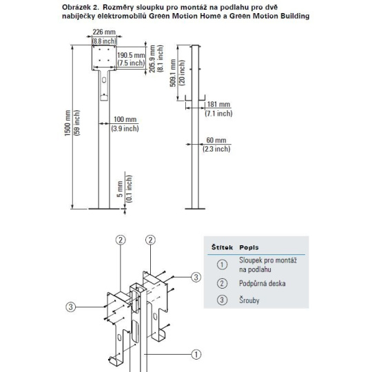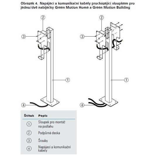Stĺpik na montáž na podlahu pre jednu nabíjačku