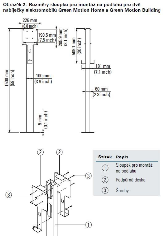 .Eaton Stojan pro montáž nabíjecí stanice na podlahu, pro 2 nabíjecí stanice GMB nebo GMH