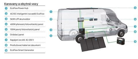 Minimalistický dizajn vám umožní pomocou špeciálnych káblov jednoducho a rýchlo prepojiť všetky zdroje energie a akumulátory s Power Hubom.