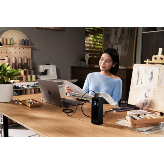 Už žiadne stratené káble, dva integrované 100W USB-C káble s navíjacím mechanizmom a pútkom sú vždy po ruke, upratané v elegantnom dizajne powerbanky, s navíjacím mechanizmom, ktorý vám umožní prístup k napájaniu v priebehu niekoľkých sekúnd.
