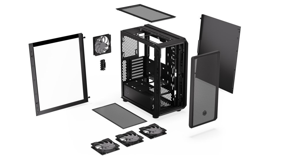 Vložili sme do nej naše najlepšie riešenie (vrátane 4 Stratus 140 PWM ARGB). Výsledkom je, že si na stôl položíte jednu z najväčších skriní ENDORFY (je to 486×228×429 mm, čo je trochu kratšie než séria Arx 700) – s dostatočným priestorom na umiestnenie vysokého chladicího systému (až 179 mm), 7 ventilátorov a väčšina grafických kariet (až 350 mm). Externý tiež vyzerá cool – s tvrdeným sklom na okne a jemne perforovanými oceľovými panelmi (predný a horný), ktoré fungujú ako filtre, je náš Arx 500 ARGB opravdovou krásou.