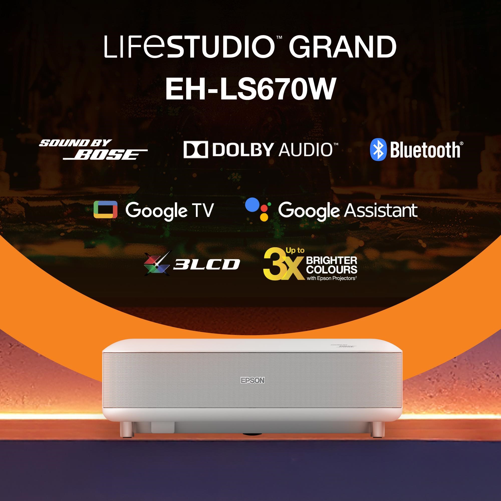 Epson Lifestudio Grand – EH-LS670W diamantová biela, 4K PRO-UHD, 3600lm, HDMI, USB, Google TV, 240Hz