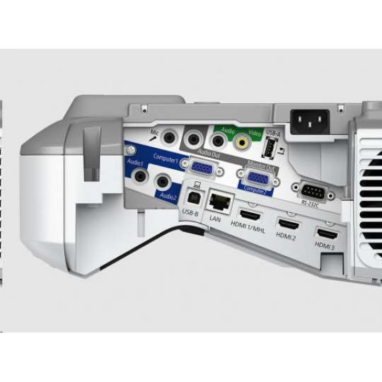 - Rozhranie: USB 2.0 typu A, USB 2.0 typu B, RS-232C, HDMI vstup (3x), kompozitný vstup, RGB vstup (2x), RGB výstup, audiovýstup, stereofónny konektor mini-jack, audiovstup, stereofónny konektor mini-jack (3x), vstup pre mikrofón, Ethernetové rozhranie (100 Base-TX / 10 Base-T), bezdrôtová sieť LAN IEEE 802.11 b/g/n (voliteľne), VGA vstup (2x), VGA výstup, MHL