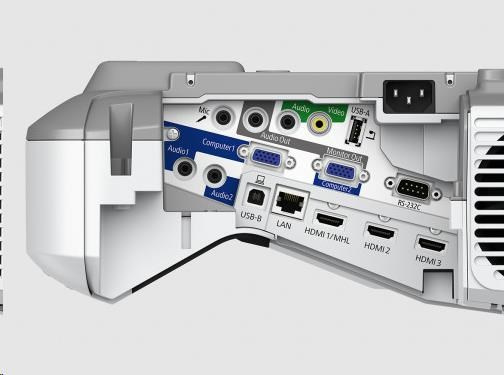 • Rozhraní: USB 2.0 typu A, USB 2.0 typu B, RS-232C, HDMI vstup (3x), kompozitní vstup, RGB vstup (2x), RGB výstup, audiovýstup, stereofonní konektor mini-jack, audiovstup, stereofonní konektor mini-jack (3x), vstup pro mikrofon, Ethernetové rozhraní (100 Base-TX / 10 Base-T), bezdrátová síť LAN IEEE 802.11 b/g/n (volitelně), VGA vstup (2x), VGA výstup, MHL