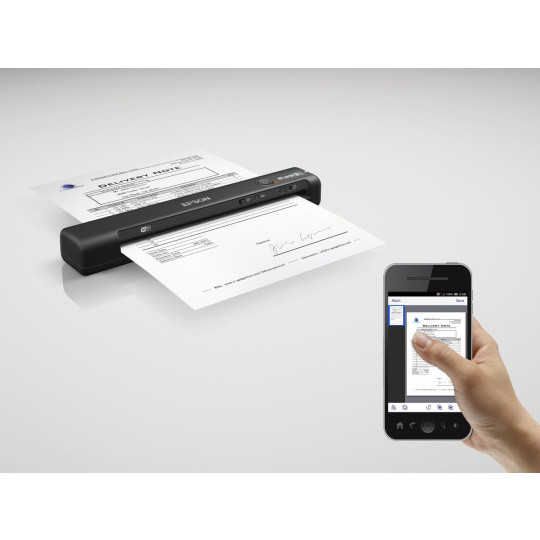 S najmenším mobilným skenerom Epson s pripojením Wi-Fi a napájaním z batérie môžete ľahko skenovať dokumenty do prehľadávateľného súboru PDF, nech ste kdekoľvek.