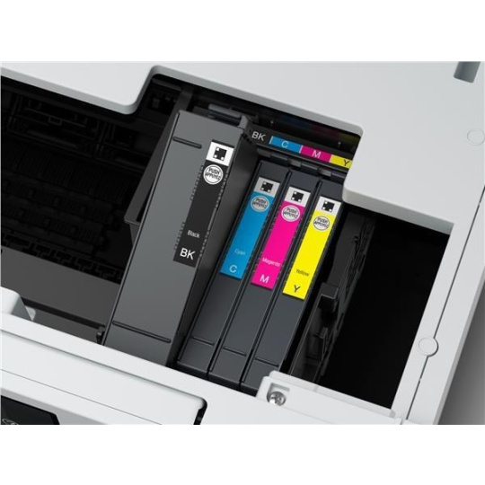 Táto vysokokvalitná multifunkčná tlačiareň vám umožní veľké plány vďaka podpore obojstrannej tlače, skenovania a faxovania až do formátu A4. Vďaka rýchlosti čiernobielej tlače až 25 str./min a automatickým podávačom dokumentov (ADF) formátu A4 s kapacitou 50 strán zvládnete všetky úlohy bez problémov. Medzi ďalšie výhody patria cenovo výhodné atramenty a flexibilné riešenia bezdrôtového pripojenia, ako napríklad skenovanie do cloudu.