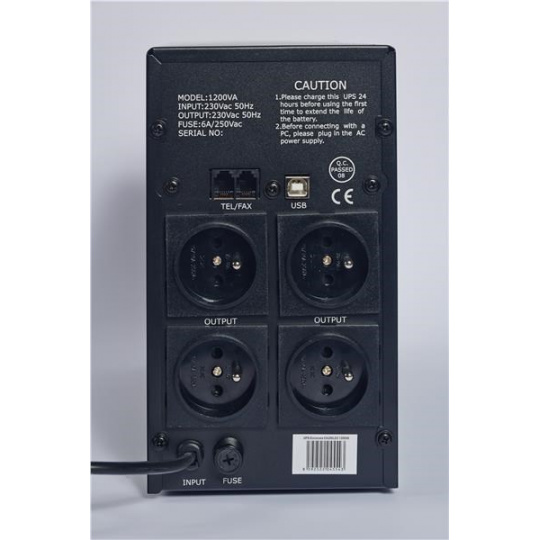 Záložný zdroj EA200LED s kompaktnými rozmermi. Napájací zdroj je riadený mikroprocesorom a je vybavený komunikačným rozhraním USB. Na tento účel sa používa dodaný softvér pre operačné systémy Microsoft Windows. Zariadenie má aj prepäťovú ochranu a ochranu telefónnej linky s konektorom RJ-11. Na prednom paneli je vypínač ON/OFF a 3 LED diódy indikujúce typ prevádzky.