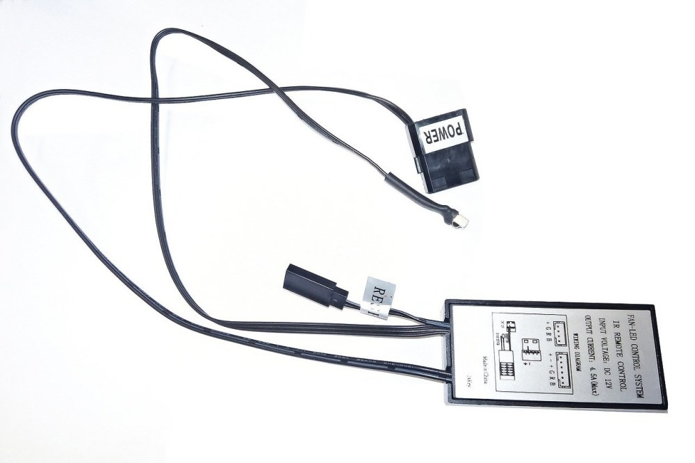 - vzdialené ovládanie (možnosť voľby farby podsvietenia s možnosťou vypnutia, riadenia otáčok ventilátorov s možnosťou vypnutia)