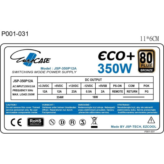 .EUROCASE zdroj 350W Eco+, 120mm, 80+ Bronze, ATX