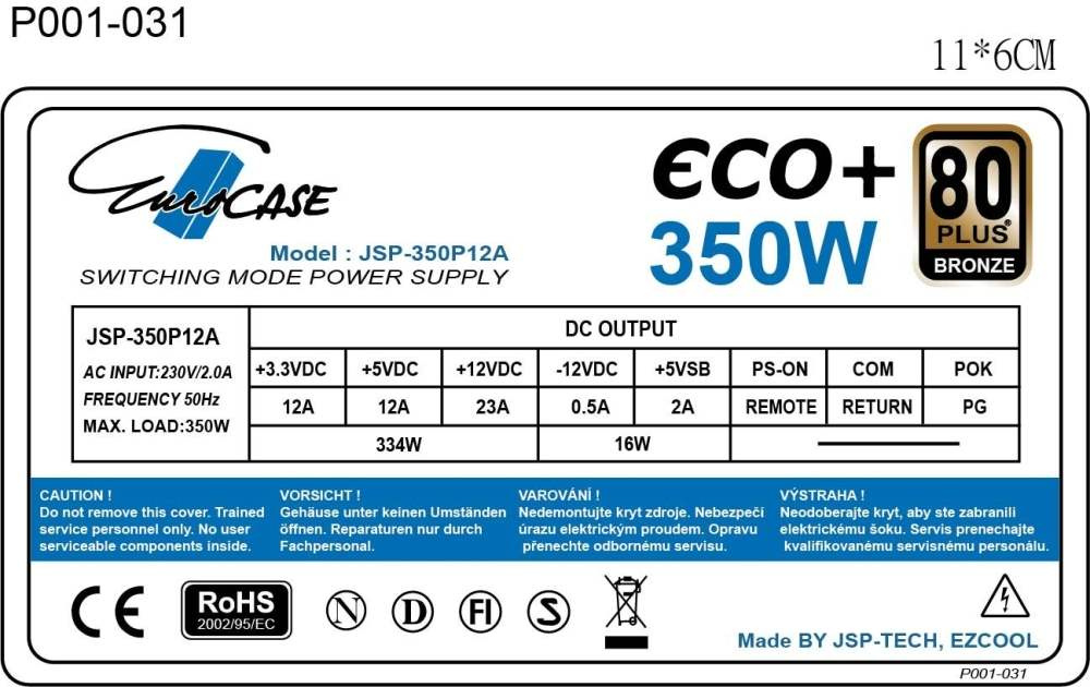 .EUROCASE zdroj 350W Eco+, 120mm, 80+ Bronze, ATX