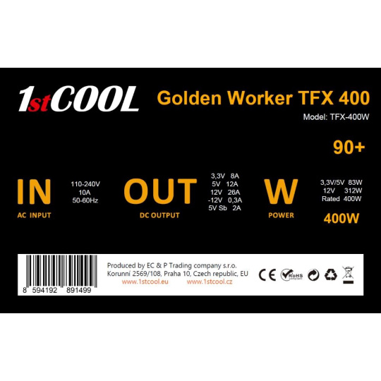 .1stCOOL Zdroj Golden Worker TFX 400 88+, 400W, TFX, černá