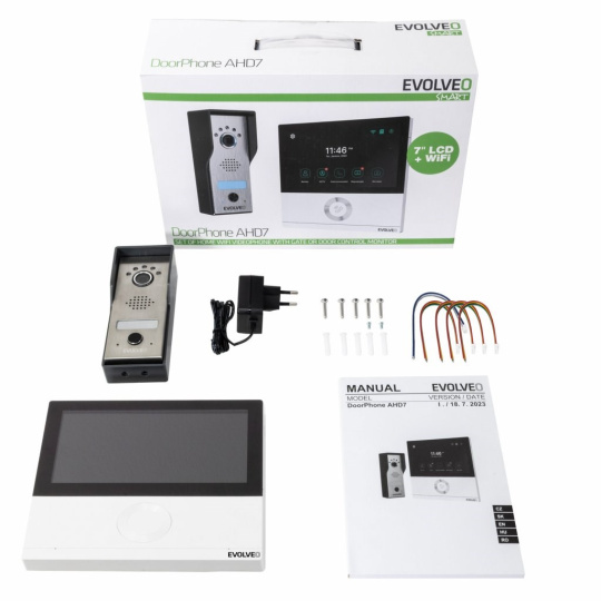 .EVOLVEO DoorPhone AHD7, Sada domácího WiFi videotelefonu s ovládáním brány nebo dveří bílý monitor
