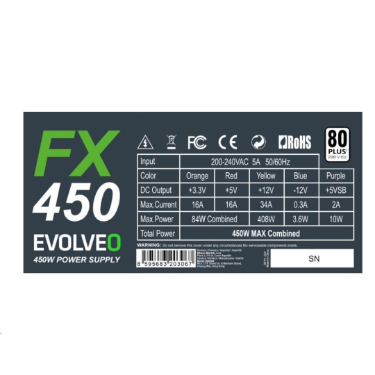 .EVOLVEO FX 450, zdroj 450W ATX, 14cm, tichý, 80+, bulk, záruka 3 roky