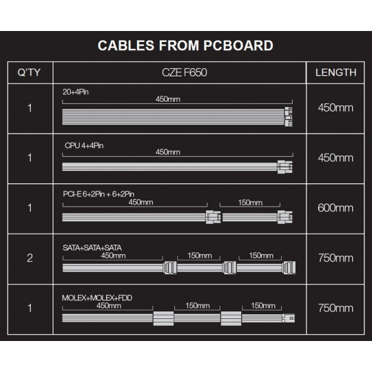 - PCI-E (6+2) +(6+2)pin (450+150 mm)
