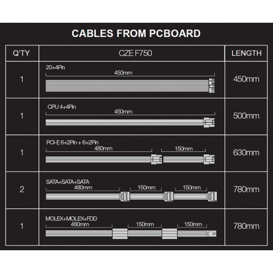 - PCI-E (6+2) +(6+2)pin (480+150 mm)