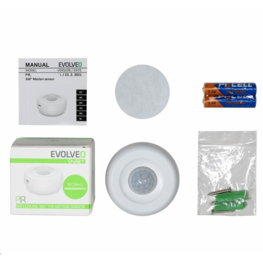 EVOLVEO PIR, chytrý WiFi bezdrátový stropní 360° PIR snímač pohybu