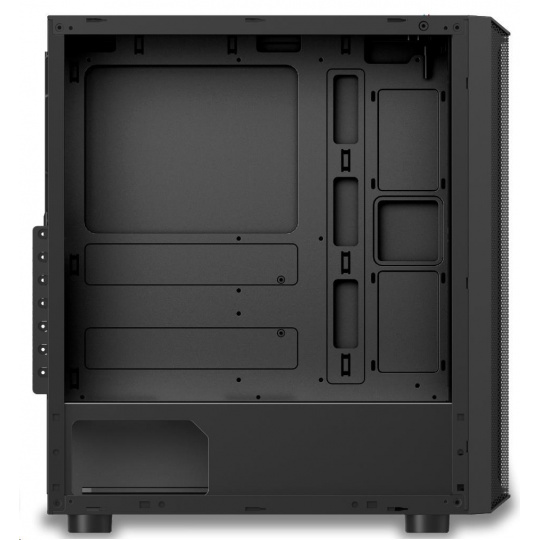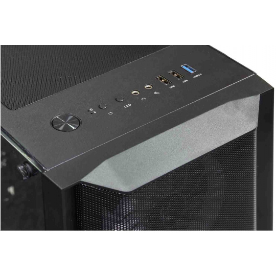 Gaming ATX midi tower s nainštalovanými 4x RGB rainbow 120 mm ventilátormi, ktoré sa ovládajú LED tlačidlom na hornej strane ovládacieho panelu. Predná mriežka cez celý predný kryt zabezpečuje účinné prúdenie vzduchu. Ľavá strana skrine obsahuje bočnicu z tvrdeného skla. Skriňa je určená pre základné dosky podporujúce platformy Intel aj AMD. Okrem formátu ATX je kompatibilný aj s formátmi Micro ATX a Mini ITX. Napájací zdroj je umiestnený v spodnej časti skrine. Spodná mriežka je vybavená výsuvným prachovým filtrom, horný prachový filter je pripevnený magnetmi a je odnímateľný.