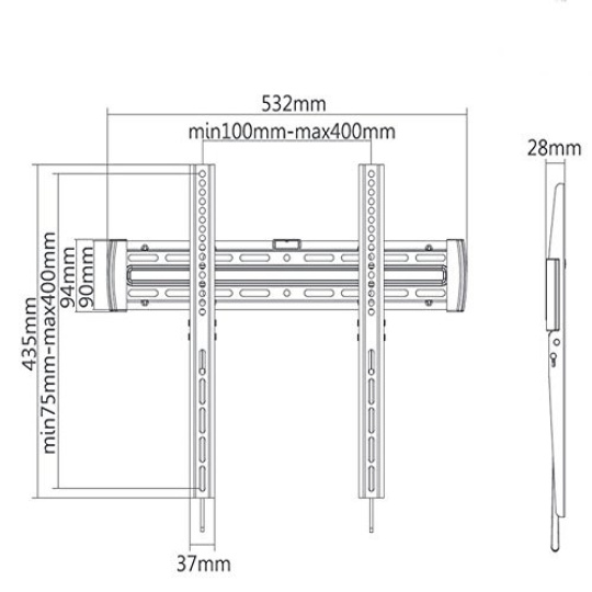 Pevný držiak TV Fiber Mounts M6C43 Nástenný držiak na TV 32-55", fixné zavedenie na stenu, vzdialenosť TV od steny 28mm, podpora VESA 75x75 až 400x400, nosnosť 30kg Kvalitný, ale zároveň cenovo dostupný fixný držiak pre zavešenie všetkých typov televízorov s uhlopriečkou 32-55". Držiak môžete zaťažiť hmotnosťou až 30kg, po zavešení je televízor automaticky zabezpečený proti vysadeniu - uvoľnenie pomocou tiehel, ktoré zostanú skryté za televízorom. Držiak podporuje VESA štandardy 75x75 až 400x400 a má integrovanú vodováhu pre jednoduchú montáž na stenu. Dodávame vrátane montážneho materiálu. Televízny držiak Fiber Mounts M6C43 pre fixné zavedenie televízie na stenu Technické údaje: max. zaťaženie 30kg podporuje VESA štandardy 75x75 až 400x400 odporúčame na televízory s uhlopriečkou 32-55" odstup TV od steny 28mm automatické zabezpečenie TV proti vysadeniu uvoľnenie pomocou tiehel, ktoré zostanú skryté za obrazovkou bezpečný držiak, pevná konštrukcia integrovaná vodováha pre jednoduchú montáž dodávame vrátane montážneho materiálu farba čierna záruka 5 rokov Fiber Mounts M6C43 je lacný, ale predsa veľmi kvalitný držiak na TV 32-55" Držiak TV Fiber Mounts M6C43 podporuje VESA štandardy: VESA 75x75 VESA 100x100 VESA 200x100 VESA 200x200 VESA 300x200 VESA 300x300 VESA 400x200 VESA 400x300 VESA 400x400 Na fixný televízny držiak Fiber Mounts M6C43 je možné zavesiť všetky typy televízorov vrátane zakrivených, ktoré podporujú niektorý z uvedených VESA štandardov a majú hmotnosť maximálne 30kg. Odporúčaná uhlopriečka je len informatívna, môžete teda na tento držiak zavesiť aj väčšie televízory.