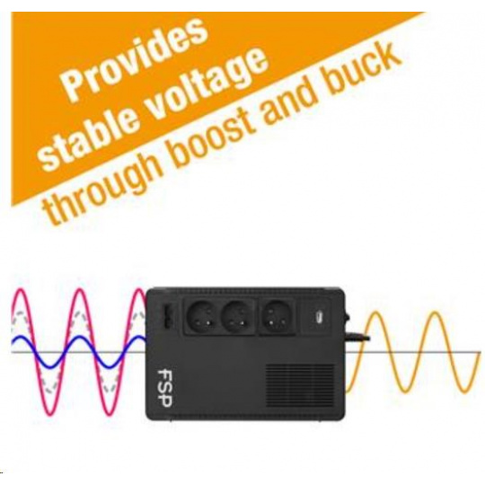 FSP/Fortron UPS ECO 800 FR, 800 VA / 480 W, USB, RJ45, interaktívna linka