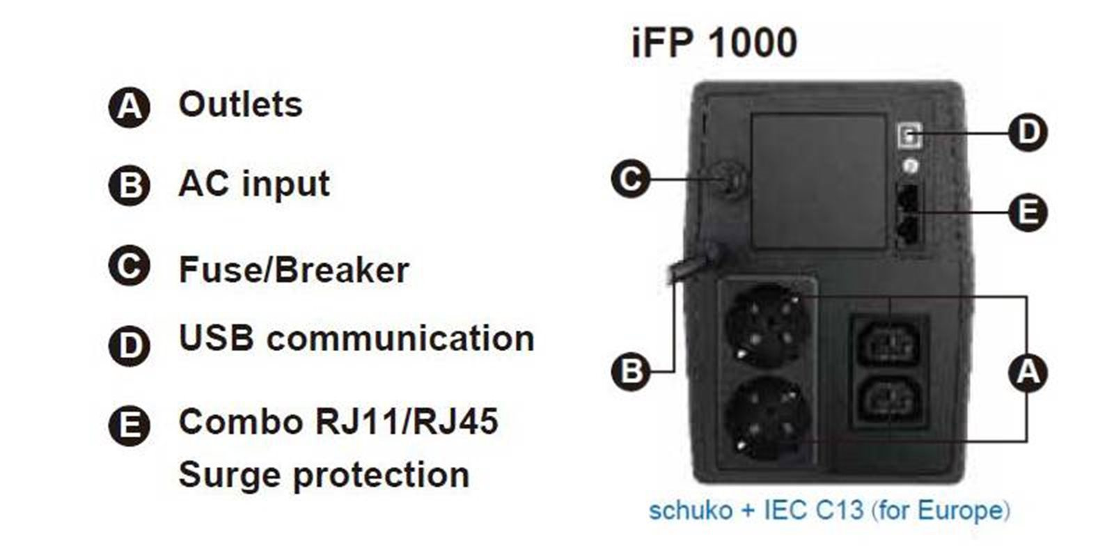 - Typ výstupnej zásuvky: 2 x zásuvka Schuko + IEC C13