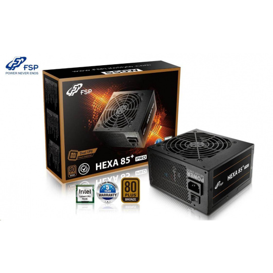 Séria HEXA 85+ PRO sú úplne nové napájacie zdroje ATX s certifikátom 80 PLUS® Bronze, s modulom DC-DC a jednokoľajovou konštrukciou +12 V, s japonskými kondenzátormi a tichým 120 mm ventilátorom, s kompletnou ochranou OCP, OVP, SCP, OPP, OTP a schválené podľa globálnych bezpečnostných predpisov. Séria HEXA 85+ PRO sa dodáva so štyrmi modelmi - 350 W, 450 W, 550 W a 650 W, ktoré spĺňajú rôzne potreby.