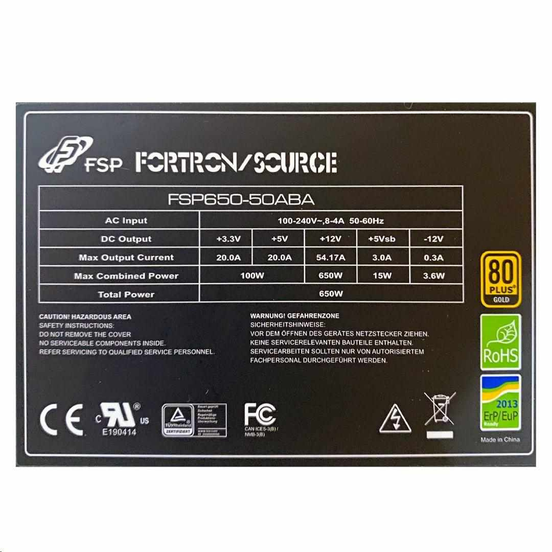 FSP/Fortron FSP650-50ABA 80PLUS GOLD, hromadný, 650 W, čierny