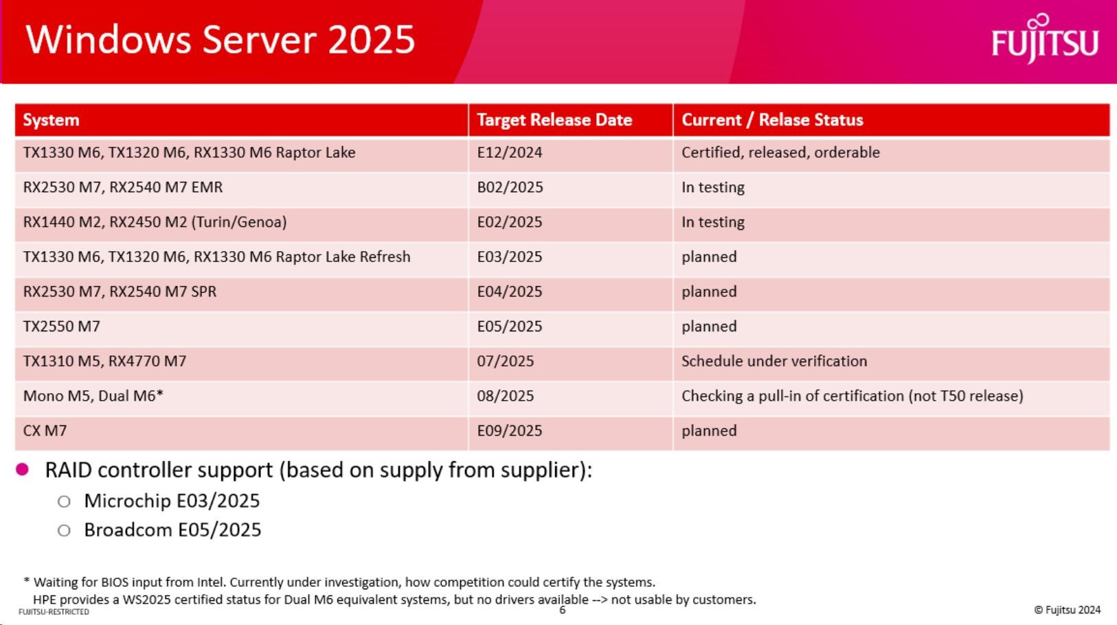 Windows Server 2025 Standard 16 Core ROK. Available only to Fujitsu Broadline Distributors with the ROK Agreement. License card with a COA label; COA label to be affixed on a server system before server shipment. Ships with a server system to the end user.