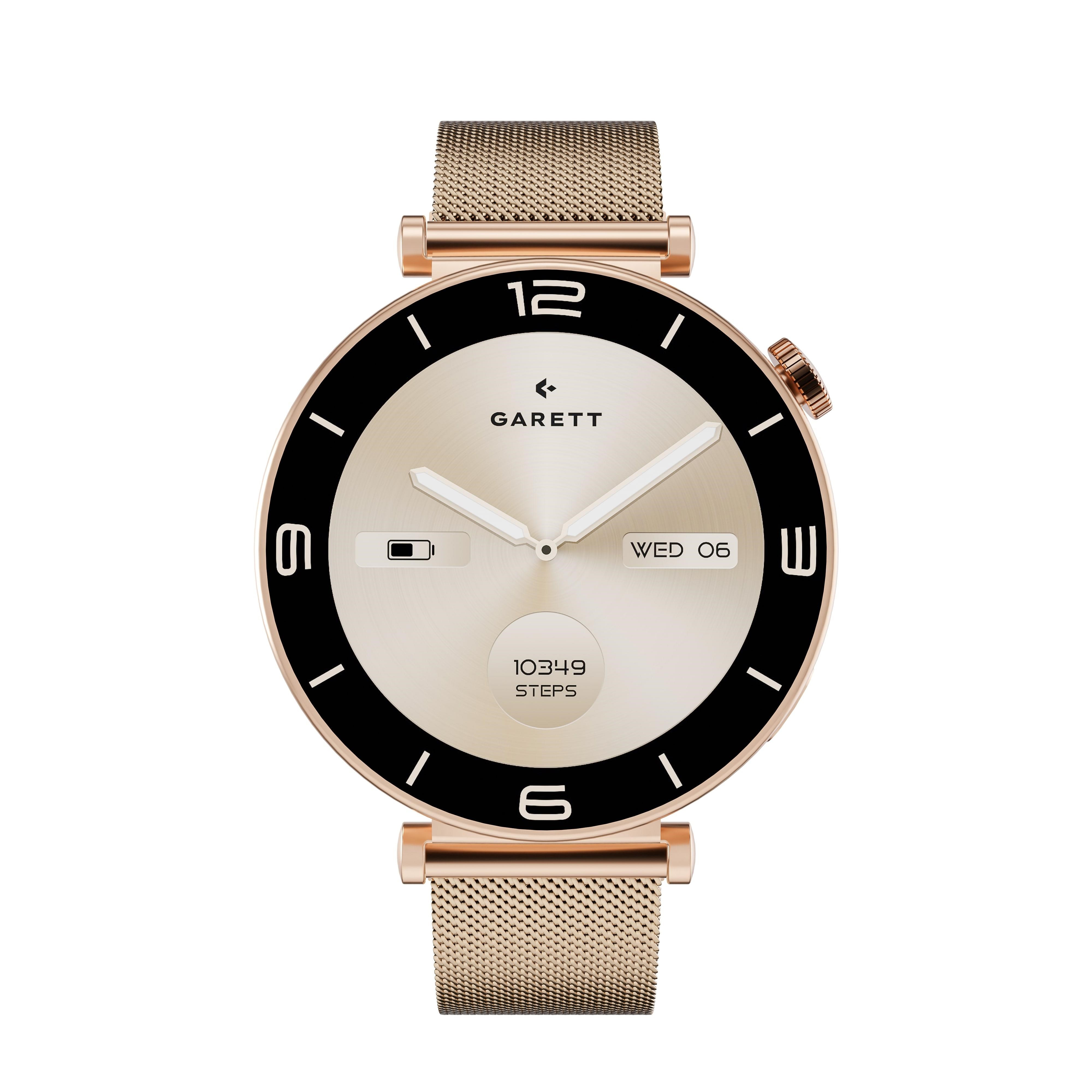 Elegantné smart hodinky Garett Rose v odtieni ružového zlata sú oveľa viac než len krásny doplnok. Sú vaším osobným asistentom, ktorý vás sprevádza každý deň. Postarajte sa o svoje zdravie, sledujte svoje každodenné aktivity a vyzerajte pritom úžasne. S týmito hodinkami sa budete cítiť výnimočne v každej situácii. Plňte si svoje ciele s eleganciou!