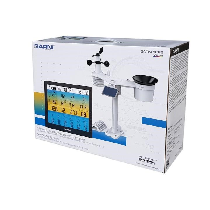 Integrovaný bezdrôtový senzor 7-v-1 GARNI 7INT meria vonkajšiu teplotu a relatívnu vlhkosť, rýchlosť a smer vetra, dažďové zrážky, UV index a slnečné žiarenie, a dáta sú odosielané do hlavnej jednotky až do vzdialenosti 150 m (na voľnom priestranstve). Napájanie zabezpečuje nabíjacia batéria, ktorá je nabíjaná pomocou zabudovaného solárneho panelu. Senzory sú kompletne zmontované a kalibrované tak, aby bola inštalácia čo najjednoduchšia pre vás.