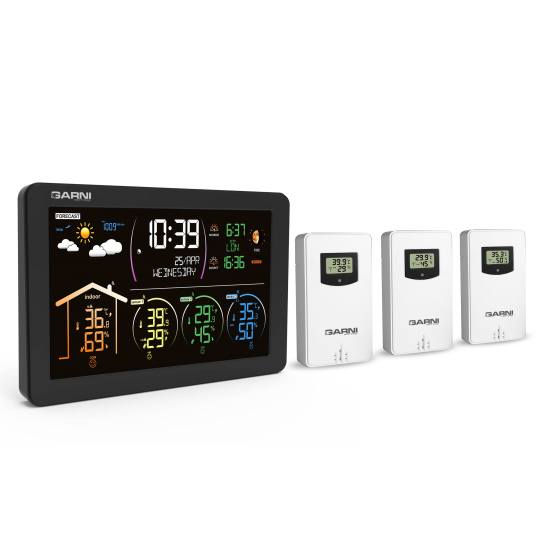 - 3 bezdrôtové senzory GARNI 030H s displejom sú súčasťou balenia