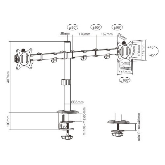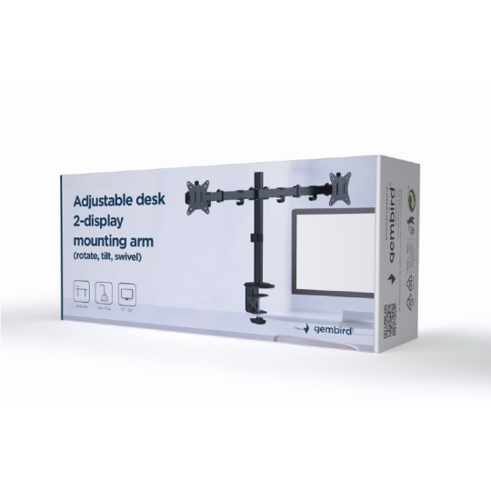 .GEMBIRD Držák 2 monitorů na stůl MA-D2-01, naklápěcí, až do 32” a 9kg, černý