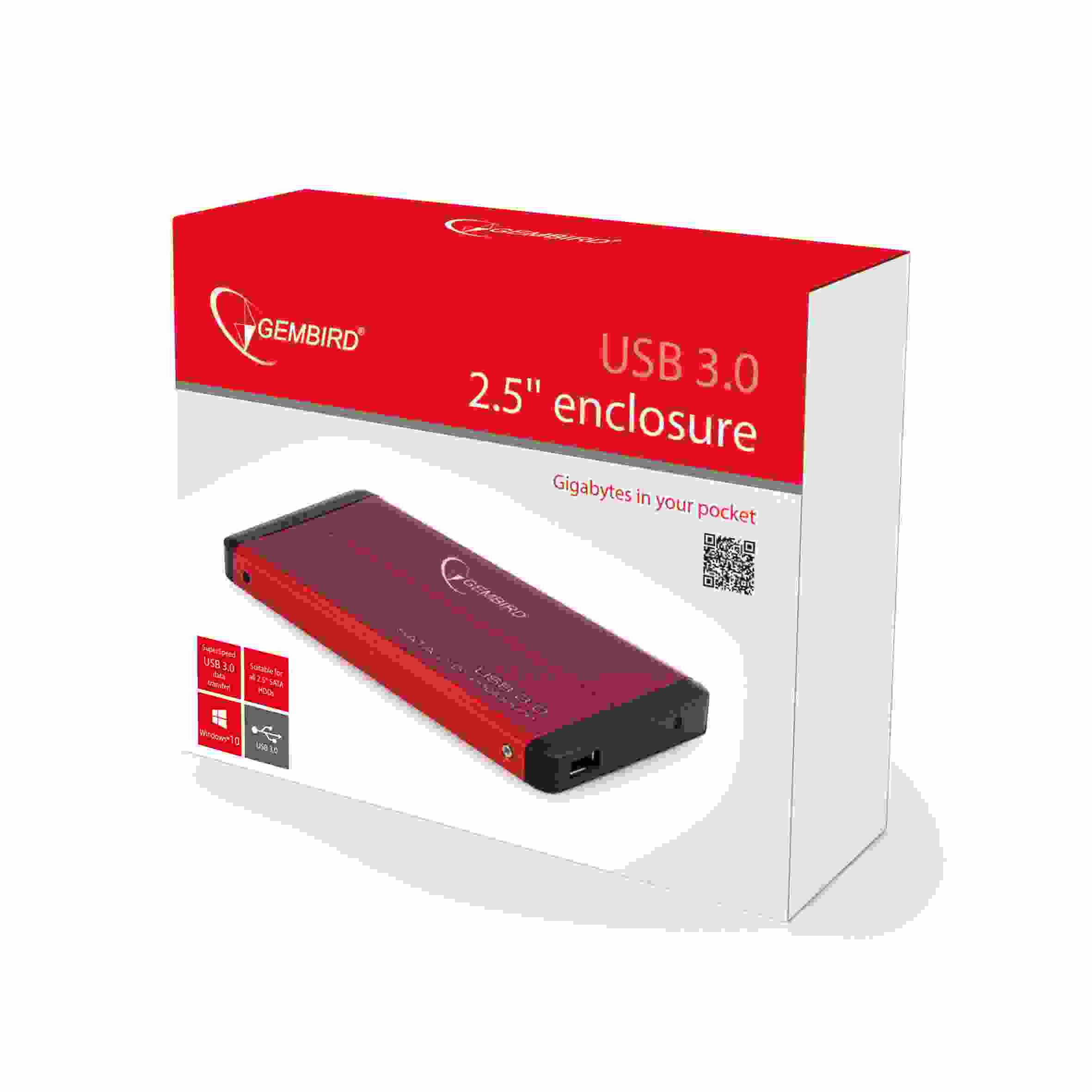 Externý box GEMBIRD pre 2.5" zariadenie, USB 3.0, SATA, červená