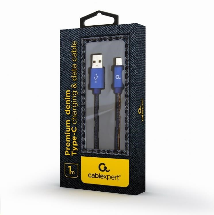 GEMBIRD CABLEXPERT USB 2.0 Kábel AM na typ C (AM/CM), 1 m, opletený, džínsy, blister, PREMIUM KVALITA